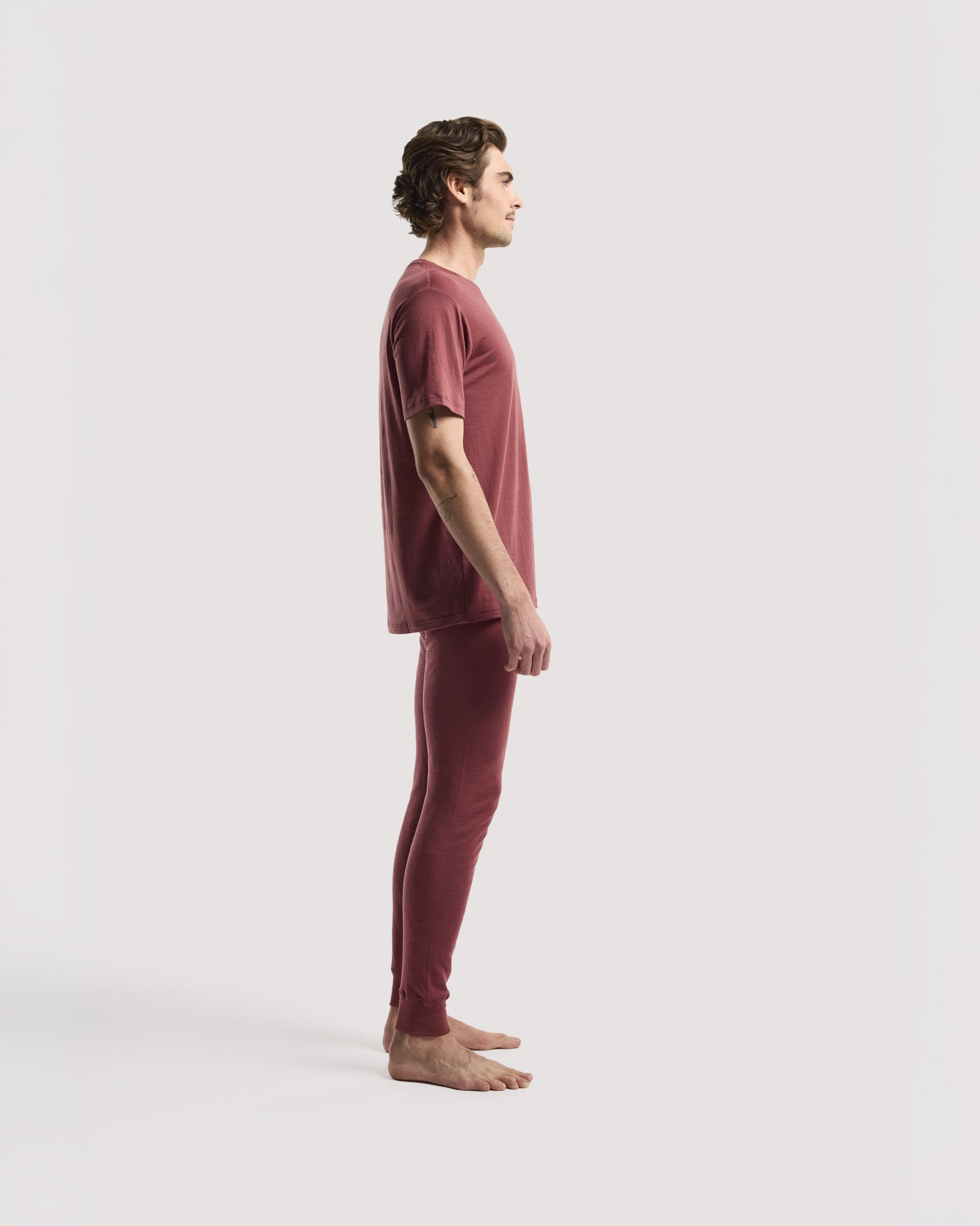 A lightweight Merino Wool T-shirt in a men’s fit. The T-shirt has a relaxed cut and is a perfect year-round garment — just as suitable for summer hikes as for everyday wear. Thanks to the natural properties of Merino wool, it regulates temperature and wicks away moisture, keeping you cool in the heat and warm when the temperature drops.