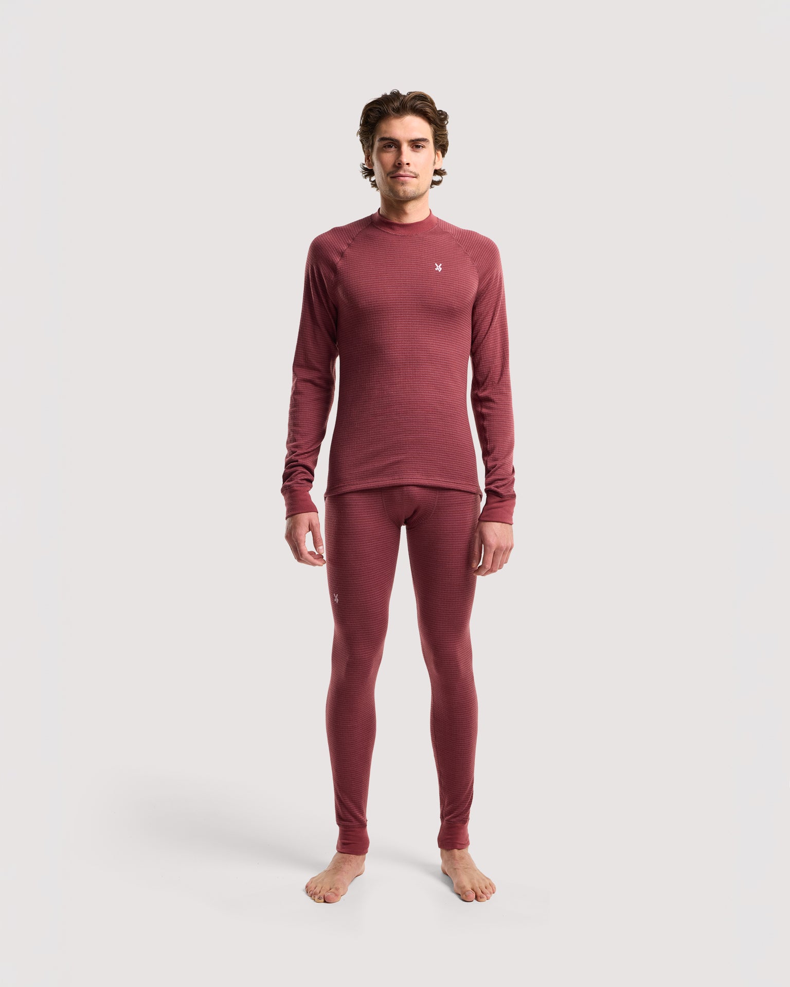 Warming base layer set in Merino Wool blend, in men's fit. The channel-knit terry on the inside effectively wicks away moisture and keeps you warm and dry. The merino wool also helps regulate body temperature naturally. A perfect base layer for outdoor activities such as skiing, hiking, hunting, fishing, or for those who work outdoors in colder weather.