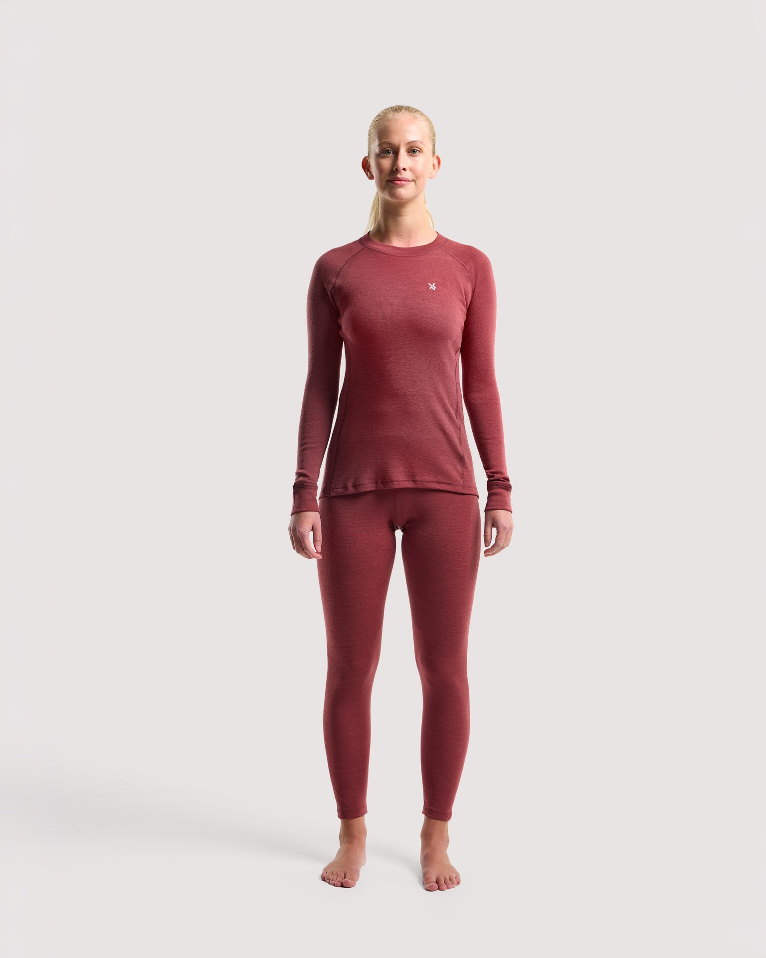 A comfortable merino wool base layer top with crew neck, in women's fit. The top has a close-fitting design and shoulder cut that provides comfortable freedom of movement. Thanks to the natural properties of merino wool, it regulates temperature and wicks away moisture, keeping you cool in the heat and warm when temperatures drop. Perfect for outdoor activities such as skiing, hiking, hunting, fishing, and cross-country skiing, as well as for those who work outdoors in colder temperatures.