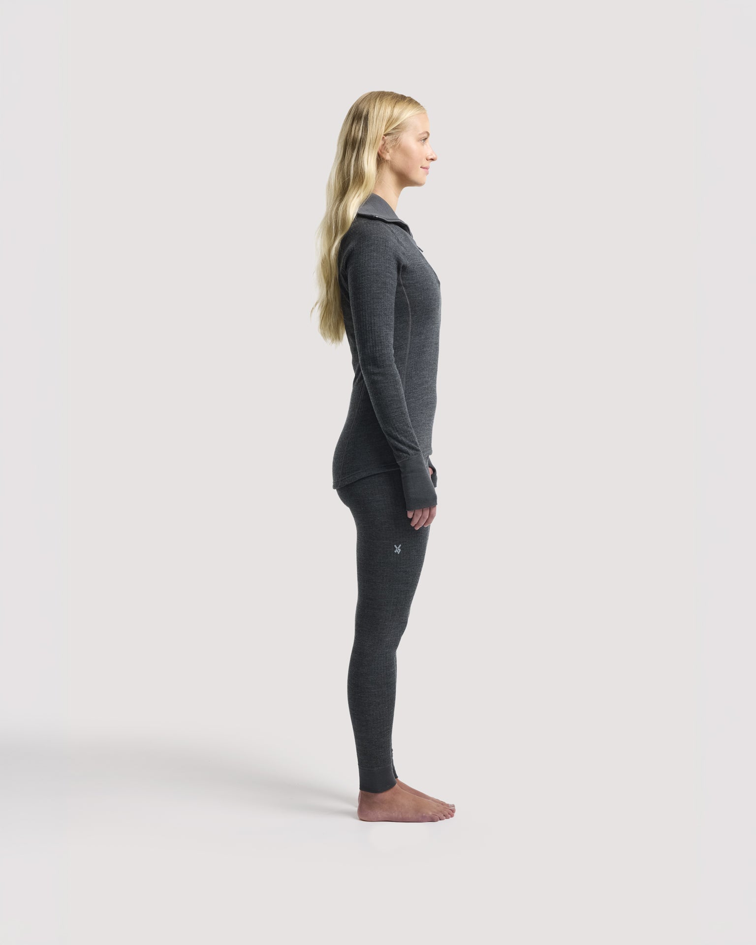 A Merino Wool base layer top with high collar and zip, in women's fit. It has long sleeves with a substantial cuff with thumbholes that keep your hands warm and the cuff tight around the wrist. The channel-knit terry on the inside effectively wicks away moisture and keeps you warm and dry. The merino wool also helps regulate body temperature naturally. A perfect base layer for outdoor activities such as skiing, trekking, hunting, fishing, or for those who work outdoors in colder weather.
