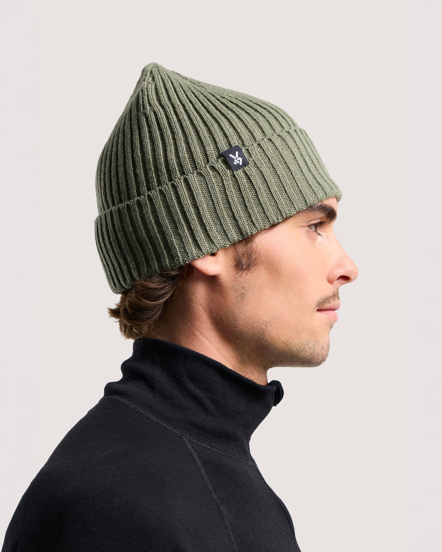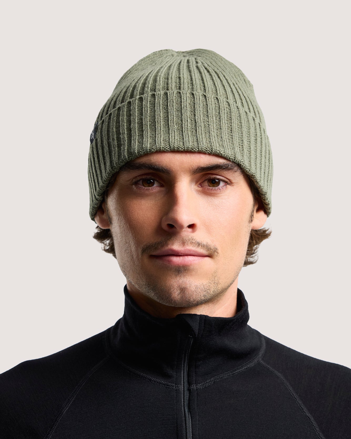 A beanie in a soft Merino Wool blend with ribbed knit structure and fold-up cuff. The elastic knit construction makes the beanie comfortable and provides a great fit, while the cuff gives a timeless look and extra warmth.