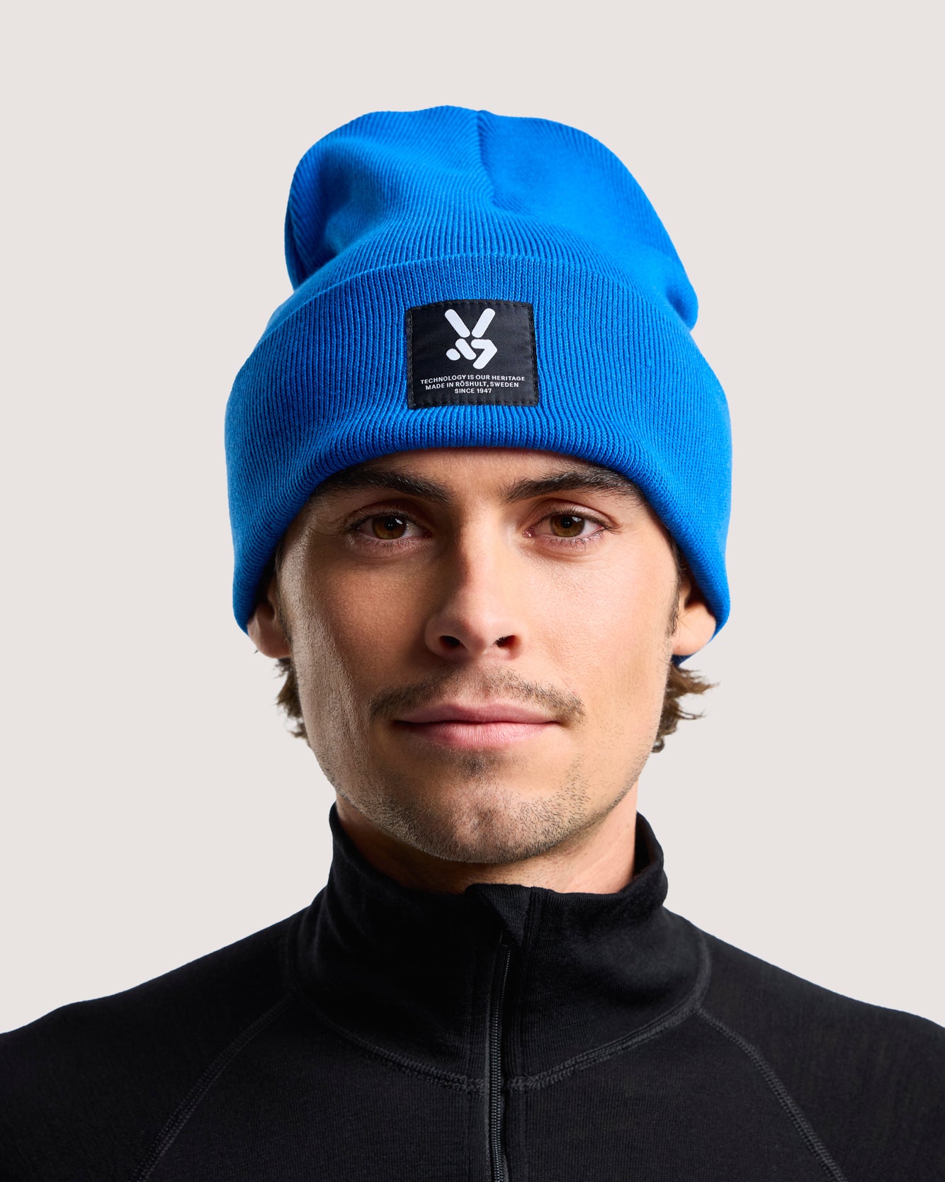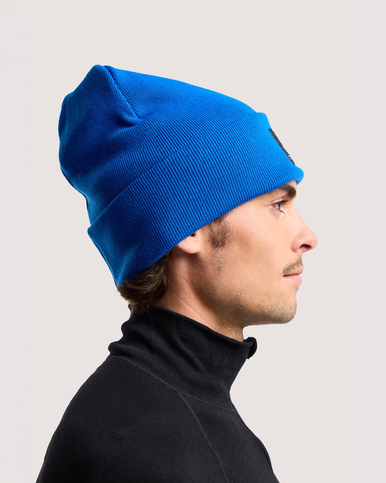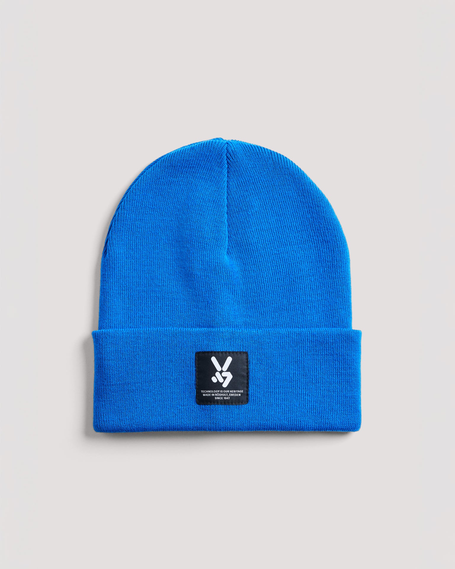 Flat knit beanie with fold-up cuff and sewn-on Seger badge. A timeless beanie that works equally well for everyday wear as for cold days outdoors.